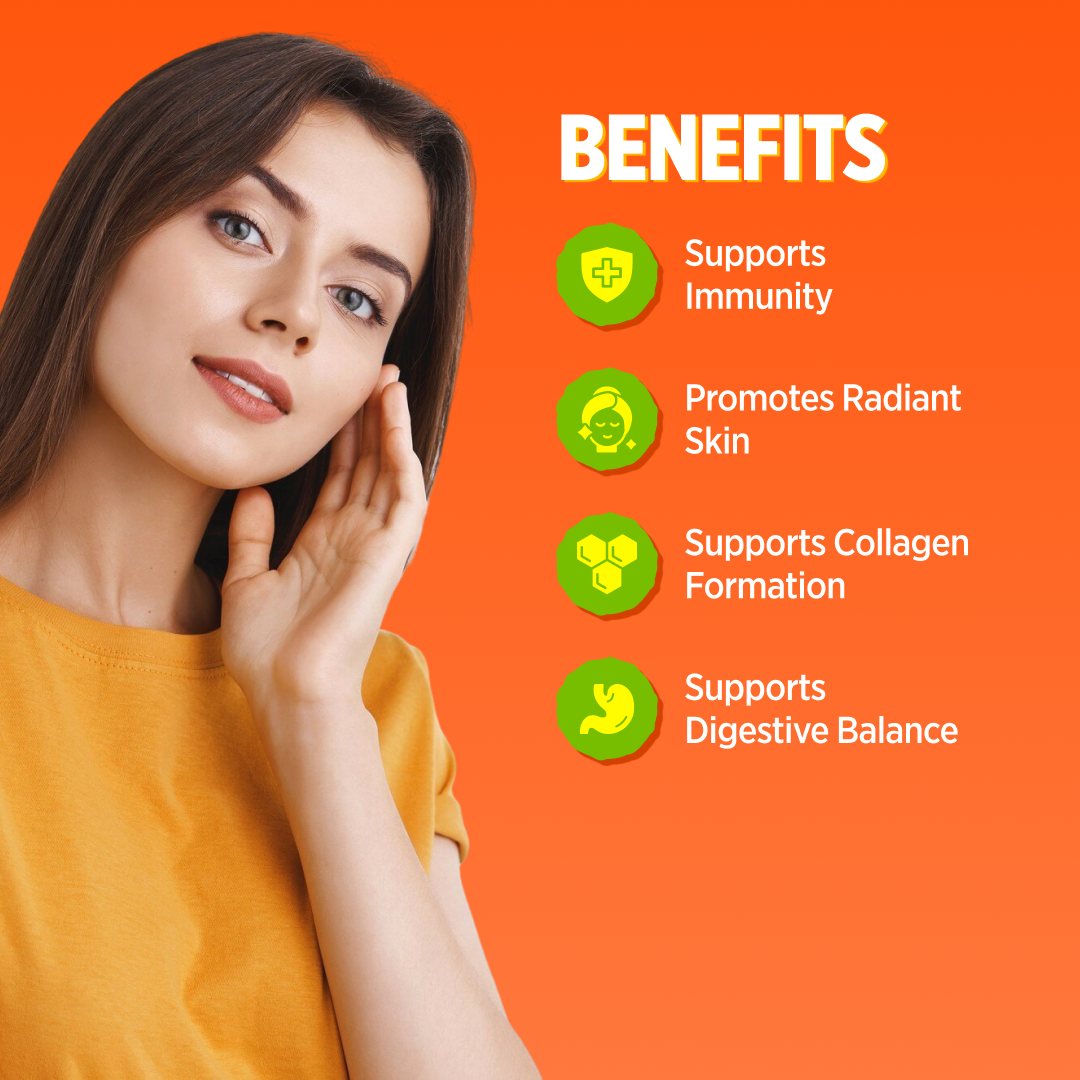 Each Vitamin C gummy is enriched with the goodness of Vitamin C (L-Ascorbic Acid) and Amla (Indian Gooseberry) Extract, and a refreshing paan flavor to help support immunity and digestive health.