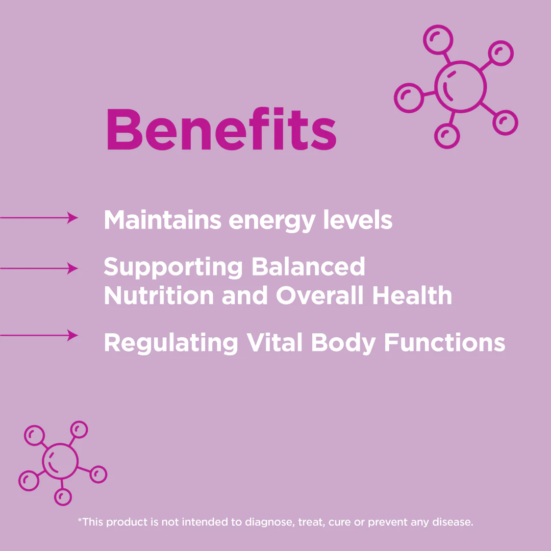 MultiVitamin Mineral Complex, enriched with a blend of essential vitamins such as Vitamin B and Vitamin C, acts as a catalyst for energy production within the body. These vitamins are vital in metabolizing carbohydrates, fats, and proteins, converting them into usable energy.