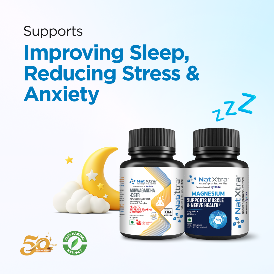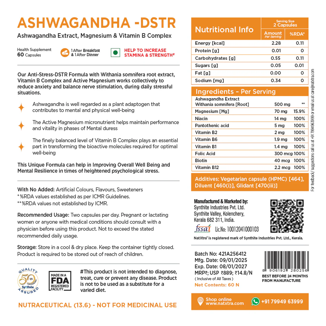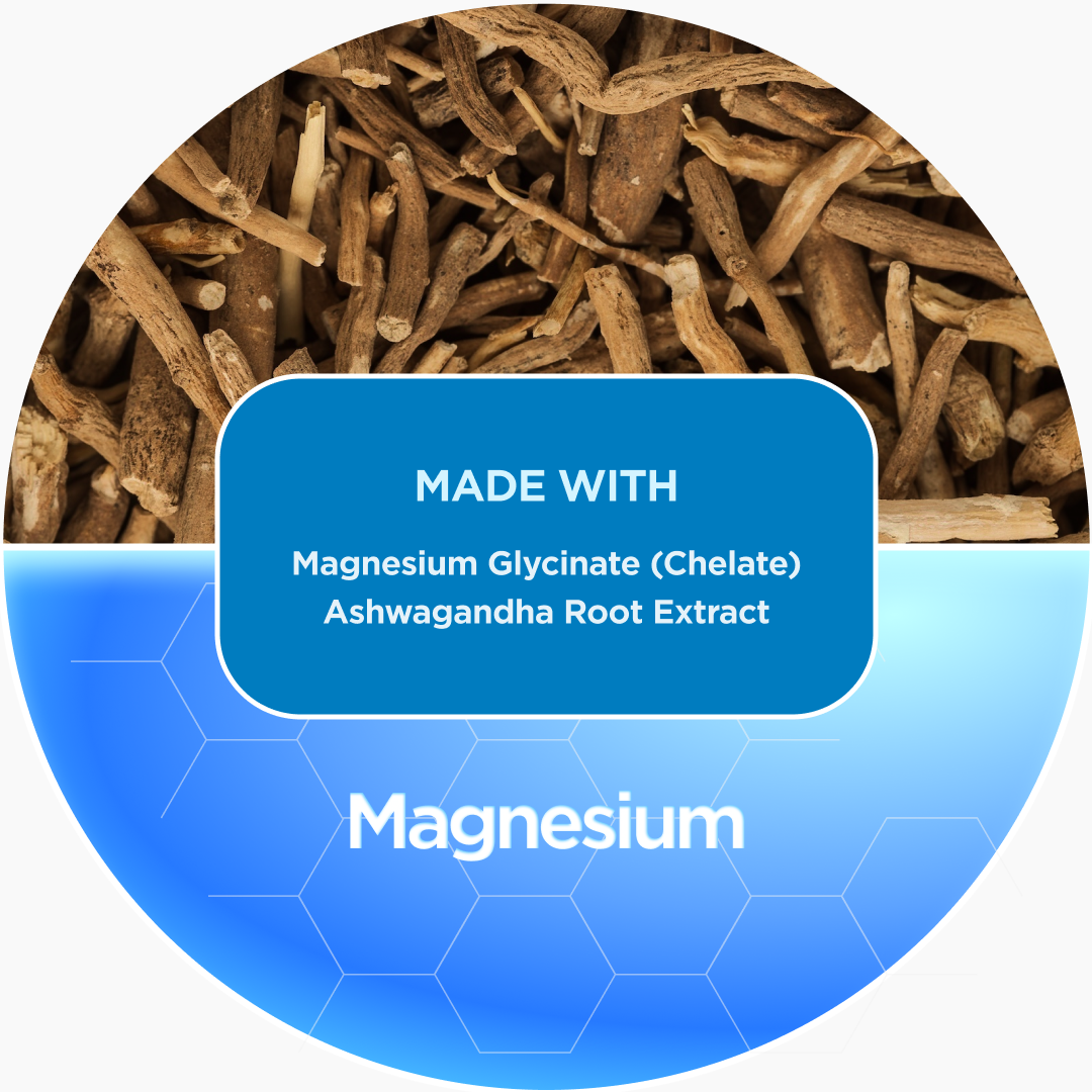 Ashwagandha root extract, Vitamin B complex and Elemental Magnesium.