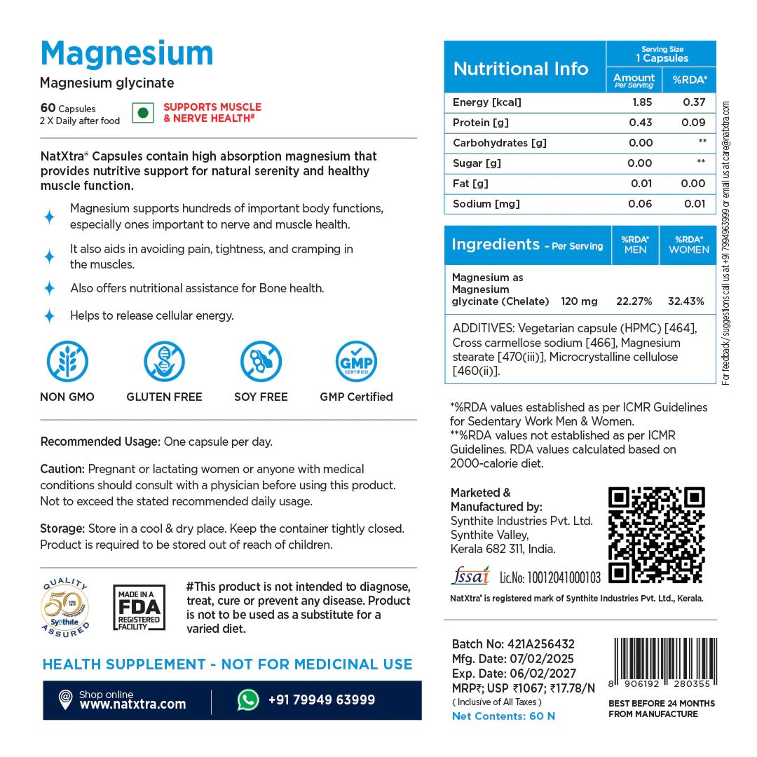 Magnesium Glycinate: Take 1 capsule after breakfast and dinner